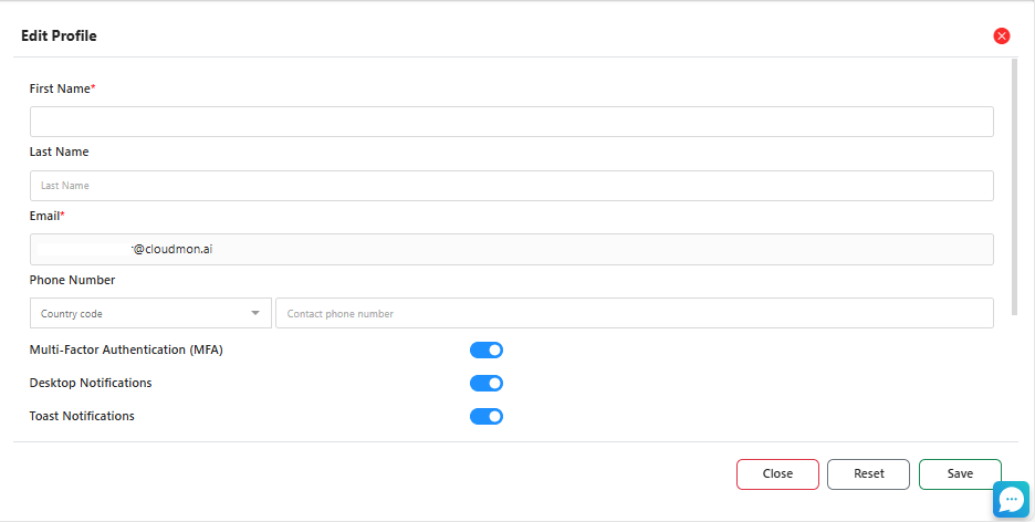 2. Click on Chat to start a conversation with the Cloudmon team.
