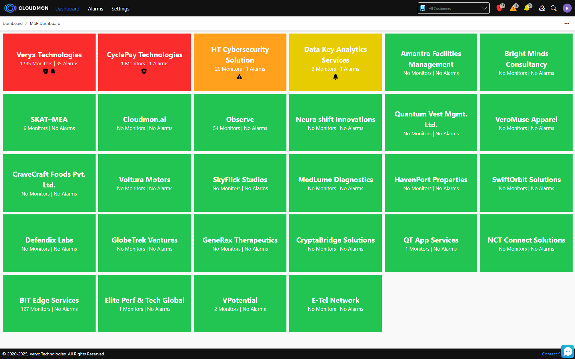 Managed Service Providers (MSPs) offer IT monitoring and management services to multiple clients, often spanning various geographical locations and network environments. Cloudmon can be effectively deployed in an MSP setting to provide comprehensive monitoring solutions for multiple client infrastructures from a centralized platform.