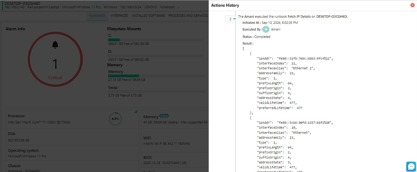 The Assistive AI will process the selected log and display a detailed breakdown under the following categories: