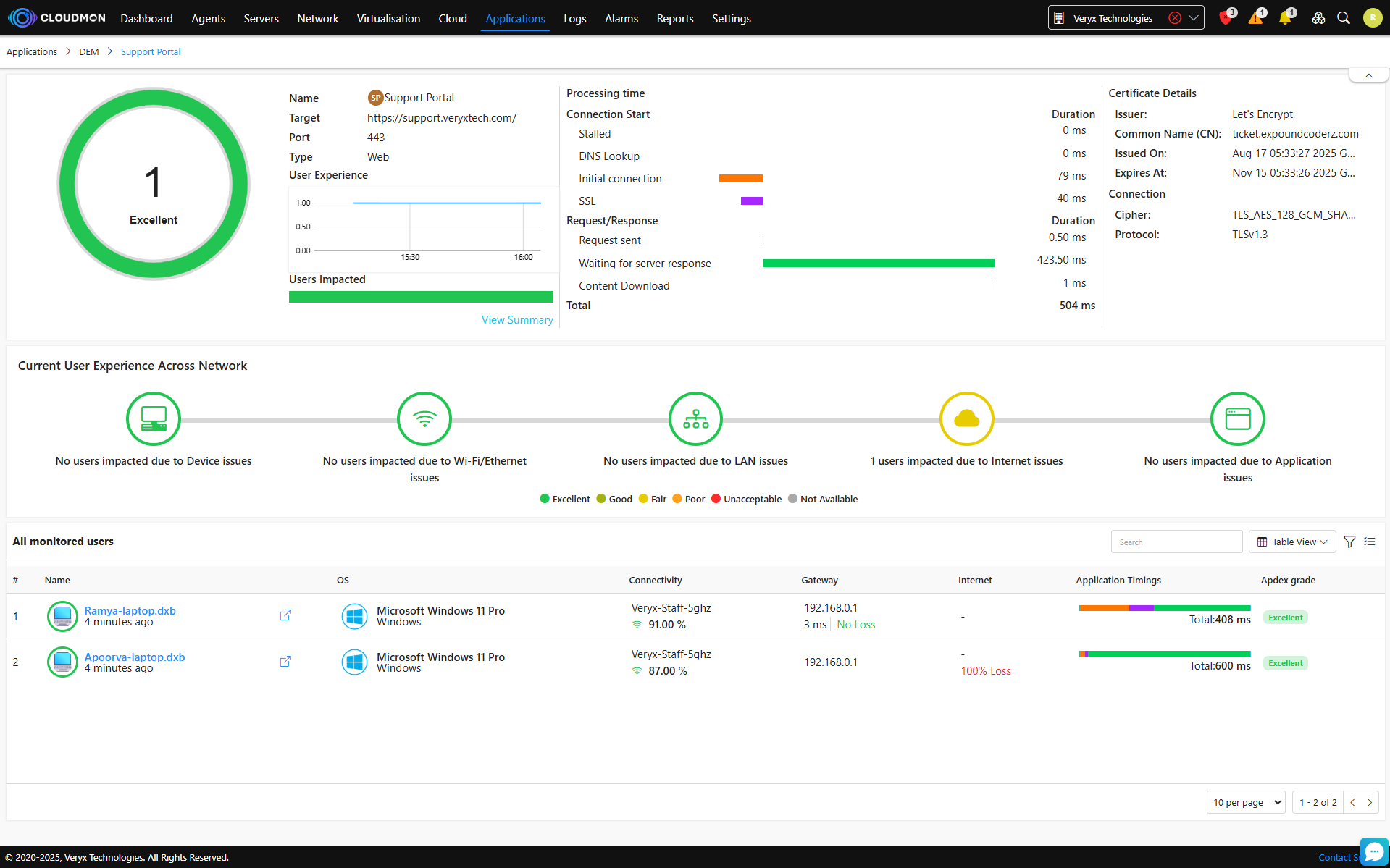 Cloudmon's DEM offers network administrators real-time insights into individual users' application experiences, whether they're in the office or remote. It helps identify issues, ensuring a clear view of network quality and pinpointing connectivity ...