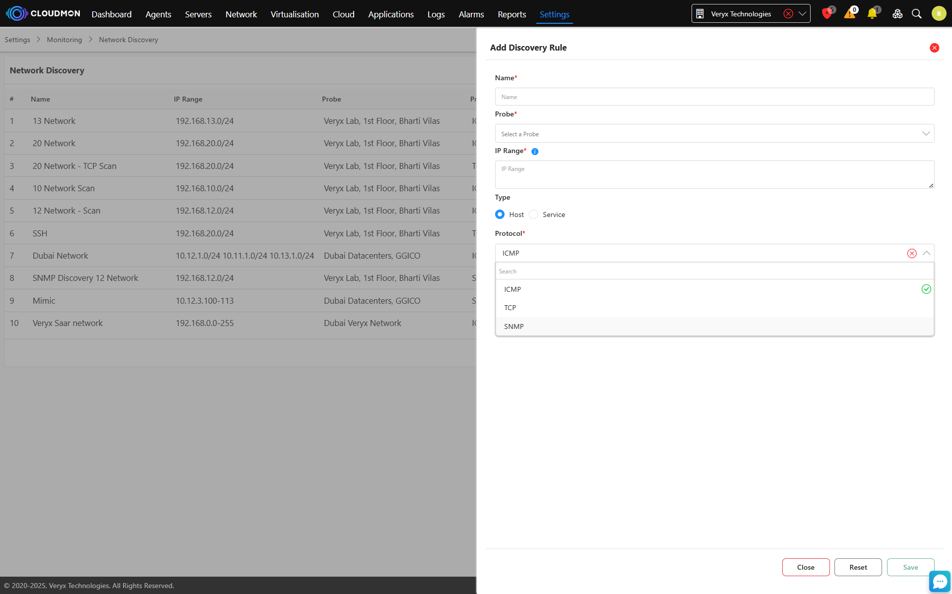 Support one or more methods (ICMP, TCP, SNMP, WMI, NetFlow/IPFIX), as enabled by the license type.