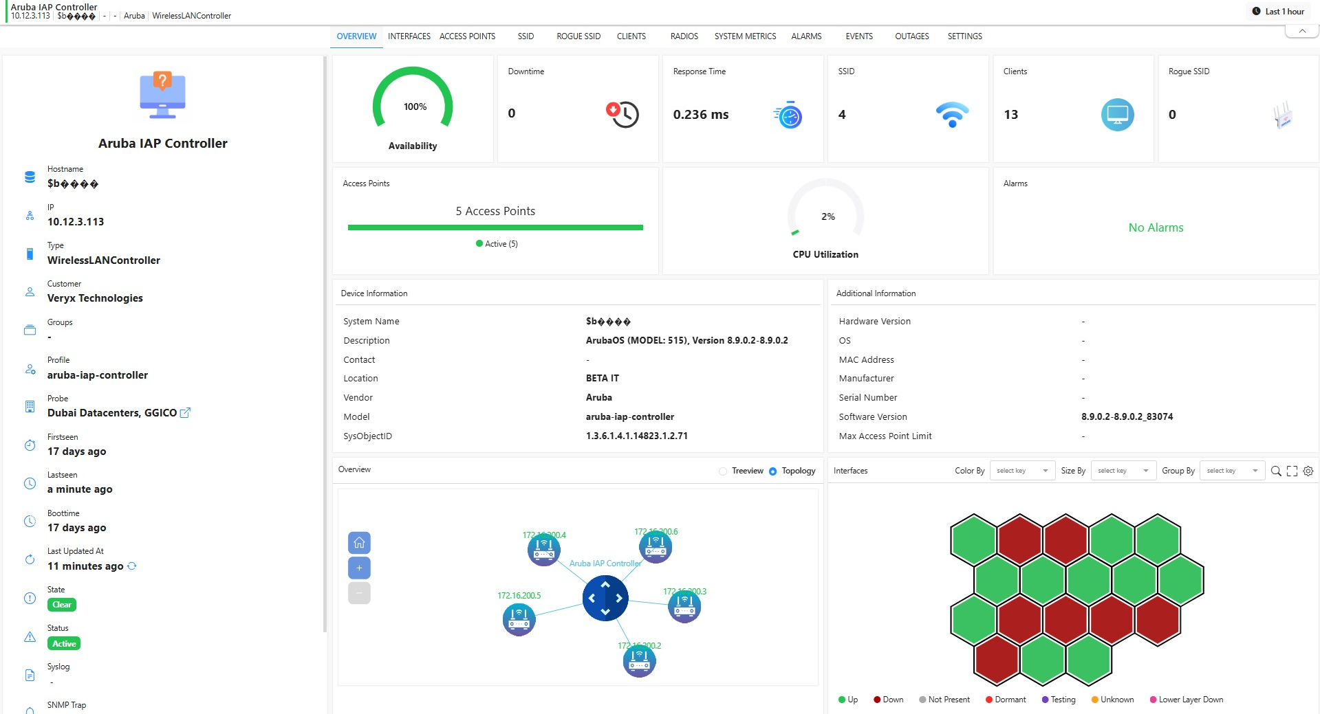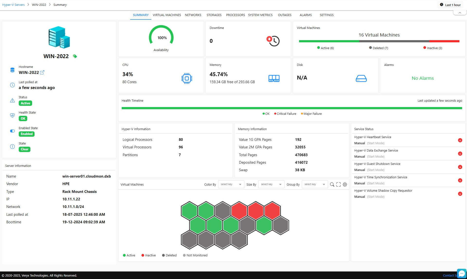 A central server (deployed in cloud or on-premises) providing a real-time dashboard of servers, networks, and user hosts.